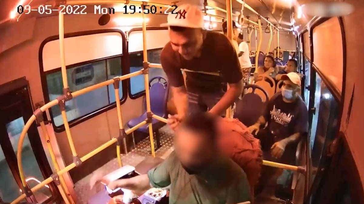 Mientras eso pasaba, los otros dos individuos abordan a al menos siete pasajeros para despojarlos de sus pertenencias. El acto dura un minuto. Posterior a eso, los tres delincuentes bajan del vehículo y se pierden entre las calles del barrio.