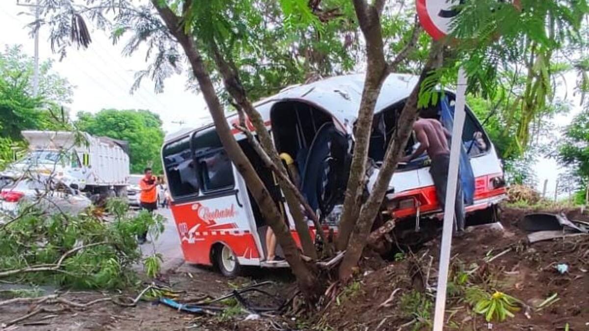 Dos personas resultaron heridas luego de que el conductor de una buseta de servicio público perdiera el control del vehículo en el que viajaban, se saliera de la vía y chocaran contra un árbol, en la mañana de este jueves.