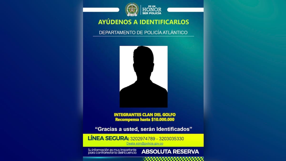 Tras las investigaciones que viene adelantando las autoridades para combatir los grupos de delincuencia común y organizada, la Policía del Atlántico dio a conocer que ofrece una recompensa de hasta $10 millones para quien brinde información que permita identificar a los miembros de grupo delincuencial Clan del Golfo en el Departamento.