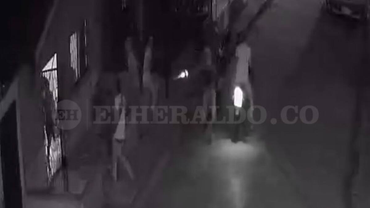 En una cámara de seguridad quedó registrado el momento en el que dos sujetos en una moto, al parecer, habrían llegado a atracar a dos jóvenes que se encontraban en la terraza de una vivienda del barrio Carrizal, sur de Barranquilla.