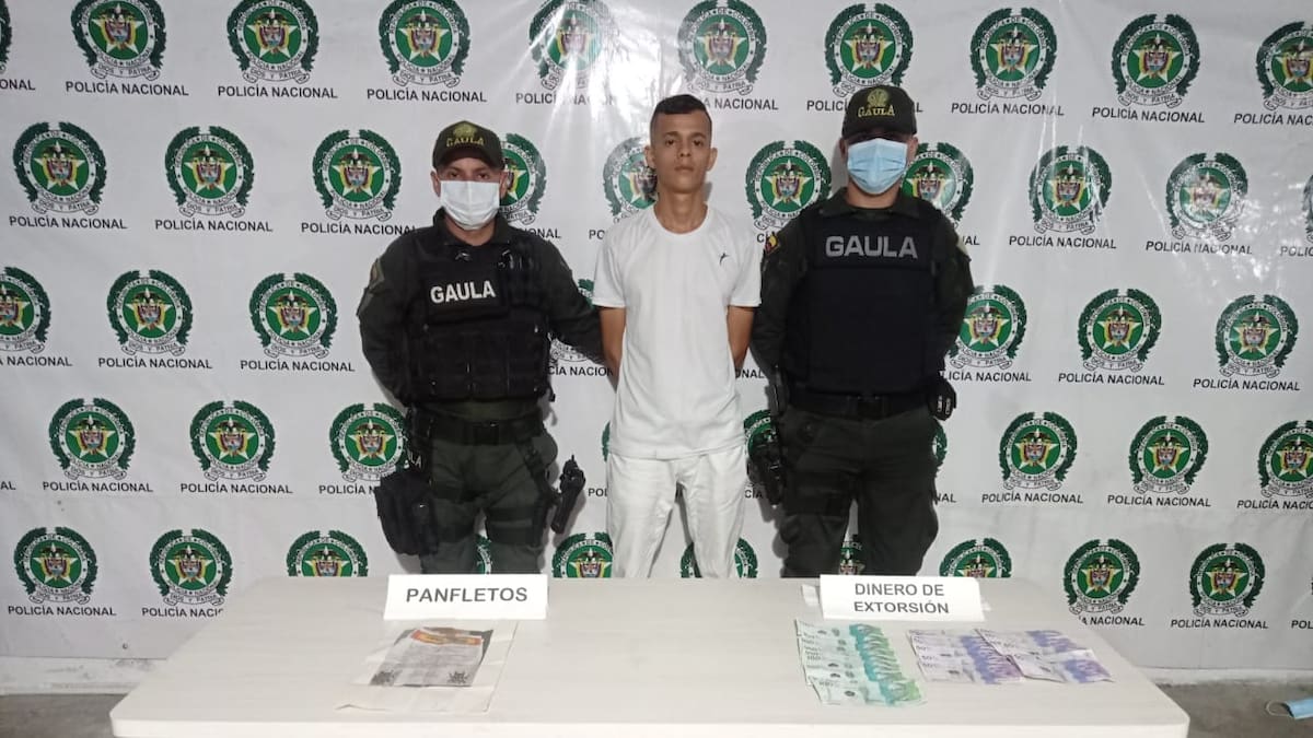 Dicha detención se da luego de que las víctimas denunciaran ante las autoridades que un sujeto, a través de panfletos y llamadas, le exigía el pago de $50 millones a cambio de no ser objetivos de atentados. Este se hacía pasar como miembro de la banda ‘los Rastrojos Costeños’.