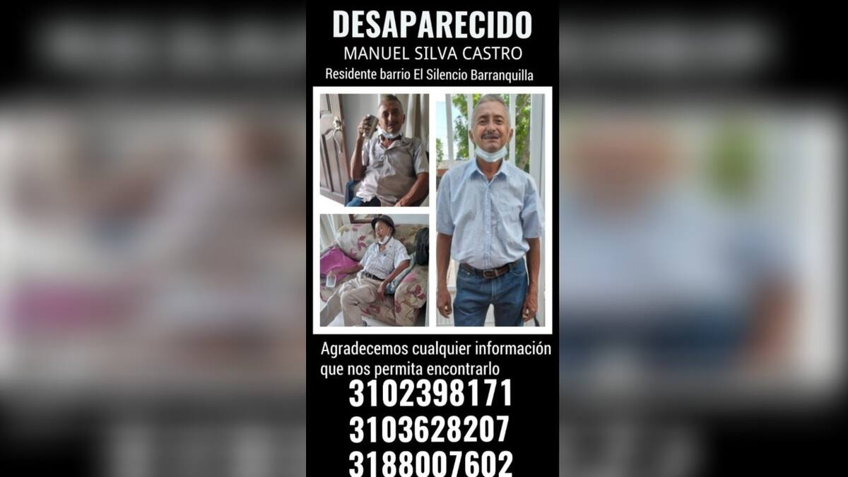 Una familia del barrio El Silencio, en la localidad Suroccidente de Barranquilla, busca afanosamente a Manuel Enrique Silva Castro, un hombre de 78 años de edad y quien, según sus allegados, padece de Alzheimer.
