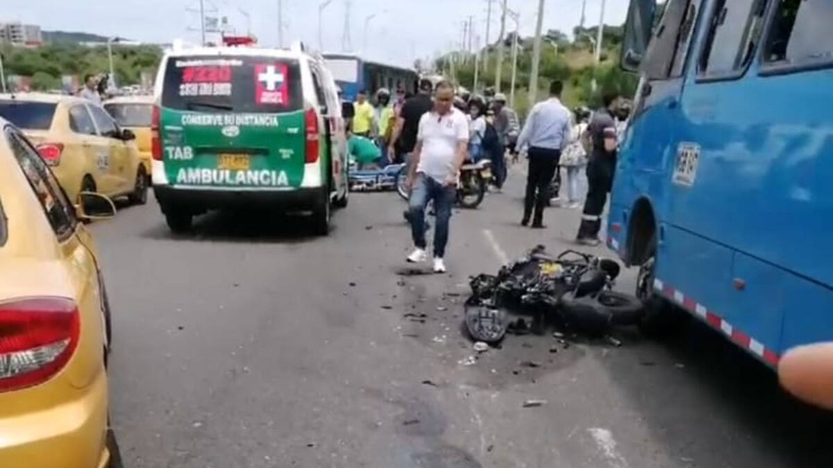 En la mañana de este domingo se registró un triple choque entre un bus de transporte público, un tractocamión y una motocicleta en la avenida Circunvalar a la altura del barrio Alameda del Río, el cual dejó gravemente herido a un hombre.
