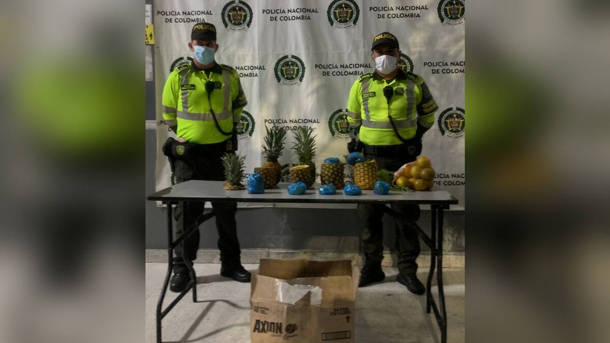 Miembros de la Seccional de Tránsito y Transporte de la Policía incautaron un guacal con piñas que tenían en su interior marihuana. La hierba iba a ser entregada en la capital del Atlántico, mediante la modalidad de encomienda.