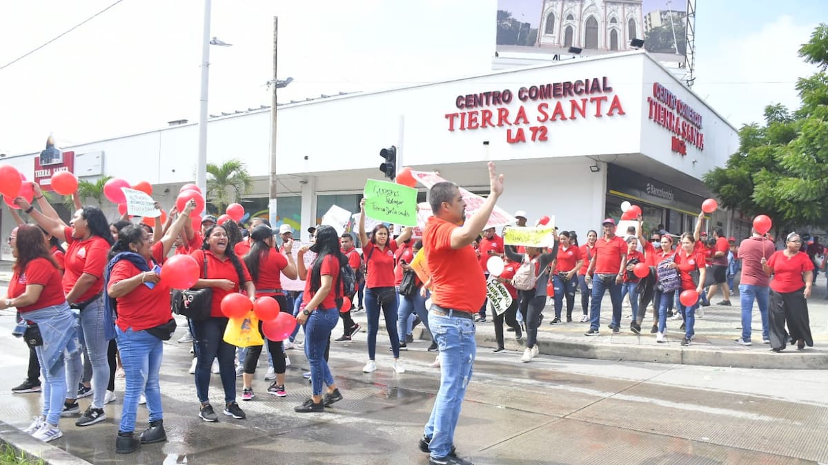 La calle 72 con carrera 46, en el norte de Barranquilla, fue el lugar de encuentro de decenas de trabajadores, quienes con globos rojos y pancartas alzaron su voz de protesta, expresando además su 'solidaridad' hacia sus jefes.