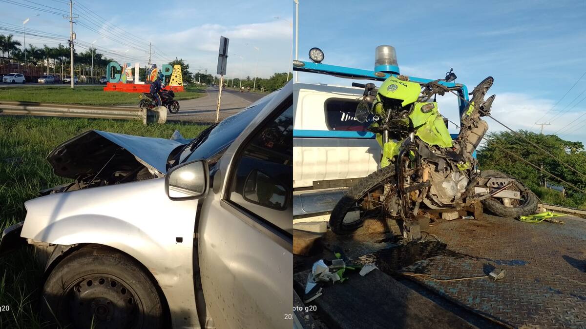 En la madrugada de este sábado se registró un fuerte siniestro vial en el que tres vehículos, un tractocamión, una motorizada de la Policía y un carro marca Renault, chocaron en la vía Cordialidad a la altura del municipio de Galapa.