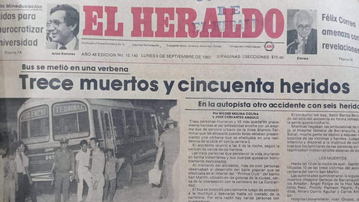 El accidente de tránsito arrojó como saldo mortal la suma de 20 muertos y 50 heridos. Fue un hecho que, a pesar de haber ocurrido hace 40 años, aún está en la memoria de los más veteranos del barrio El Bosque, en el suroccidente de Barranquilla, donde tuvo lugar aquel trágico episodio. Hoy el panorama no es tan distinto con relación a la tasa de mortalidad por accidentes de tránsito, pues en el transcurso de 2022 se han contabilizado 89 casos en las vías de todo el departamento del Atlántico.