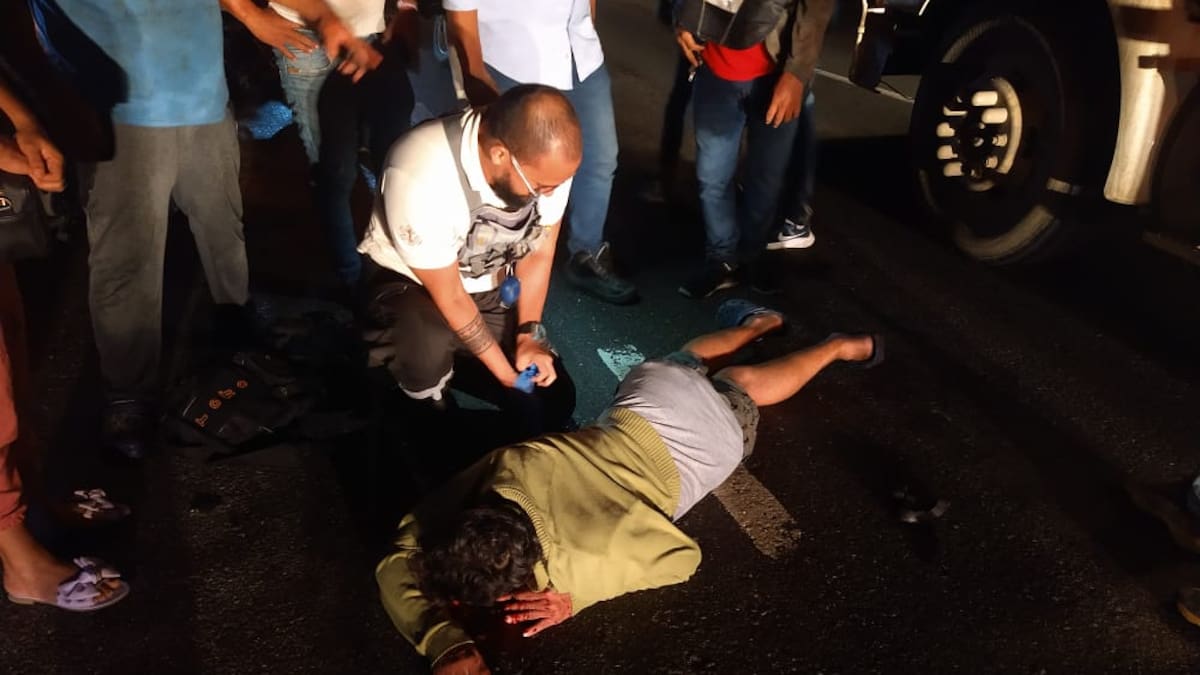 El lesionado salió expulsado del vehículo y quedó tendido en el suelo. En videos grabados por testigos se pudo observar a la víctima, quien traía puesto un buzo verde y una bermuda, al parecer, tenía una pierna fracturada.