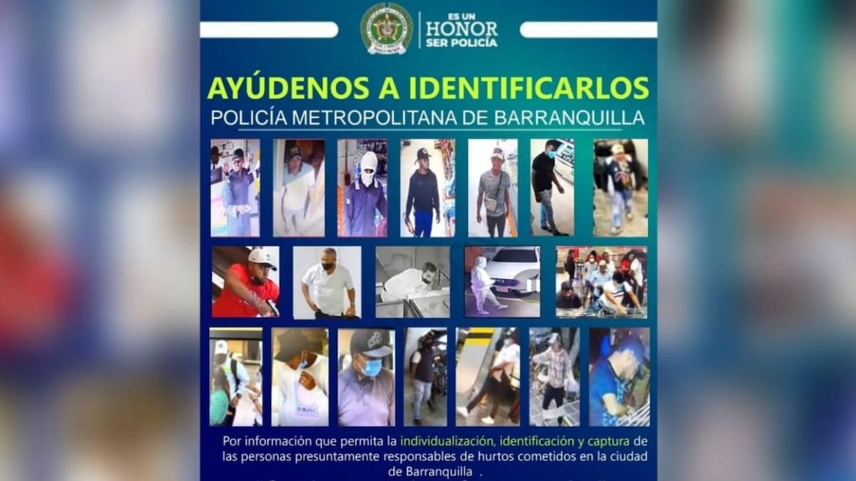 La Policía Metropolitana de Barranquilla emitió en la mañana de este 23 de mayo un cartel con las imágenes de individuos involucrados en recientes casos de hurto a comercio, extraídas de videos de cámaras de seguridad.