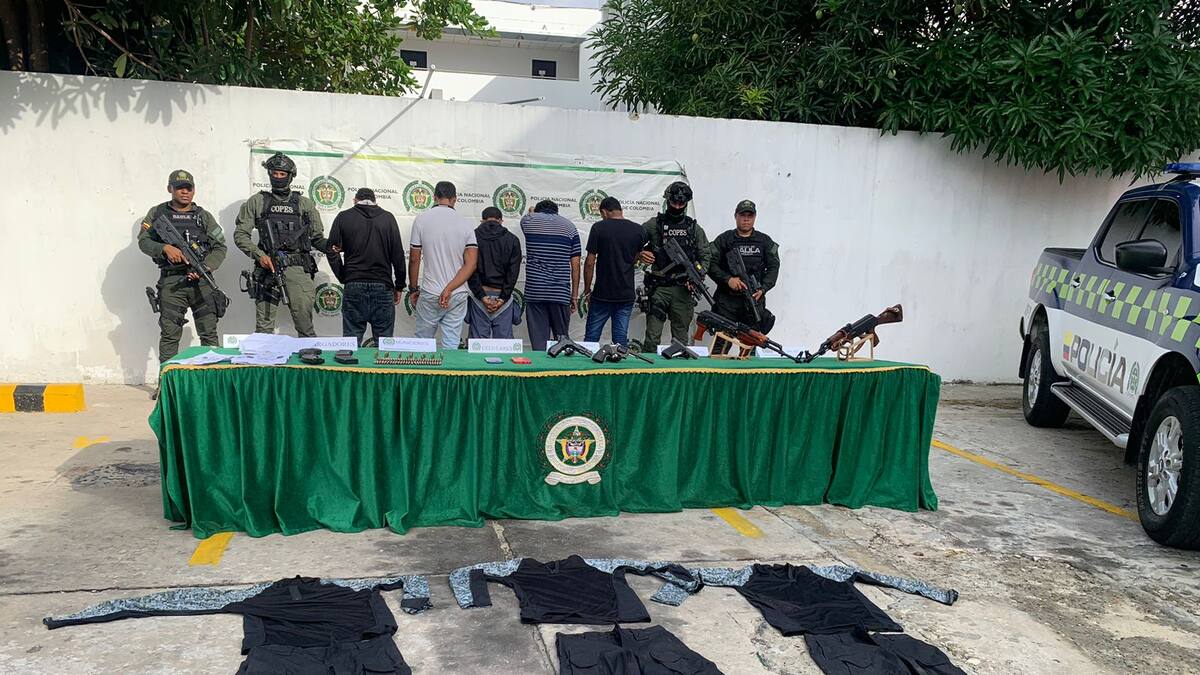 A los detenidos se les encontraron tres fusiles y armas cortas, panfletos y ropas de camuflaje. Estos, al parecer, estarían al servicio de la banda 'Los Costeños', de la línea liderada por Jorge Eliécer Díaz Collazos, alias 'Castor'.