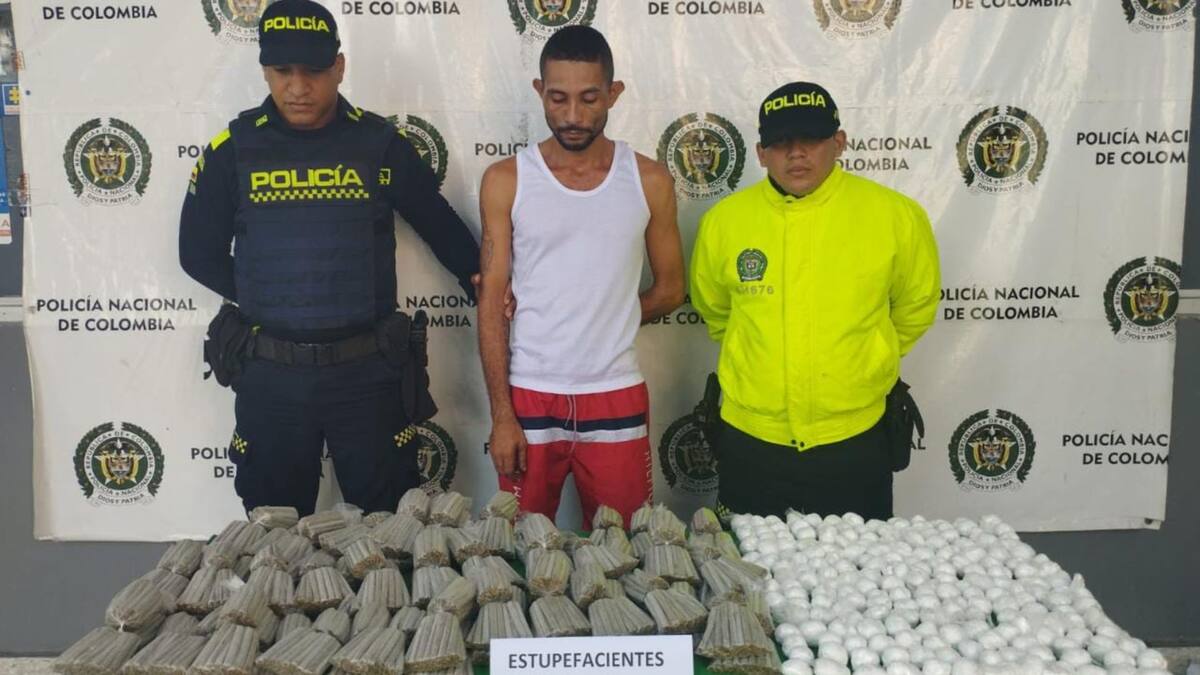 Según las autoridades, al hombre Le hallaron en su poder 3000 cigarrillos de Marihuana, equivalentes a 4800 gramos, y 2400 dosis de base de coca, equivalentes a 800 gramos.