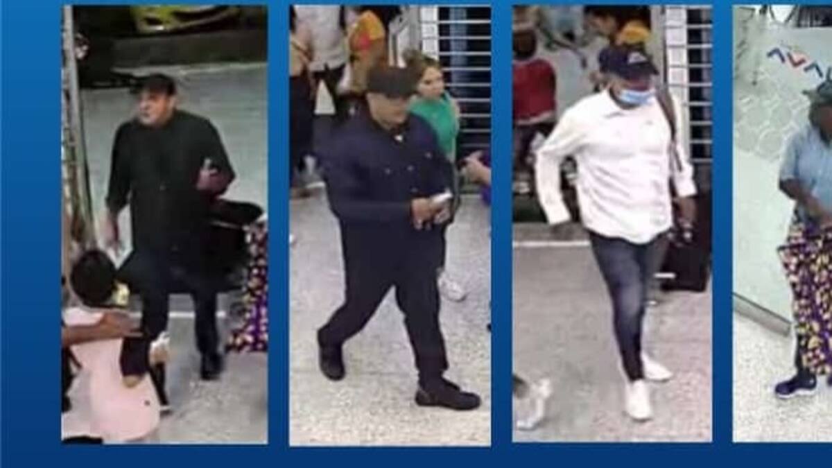 En el cartel difundido por la Policía Metropolitana de Barranquilla se observa las fotos de los cuatro presuntos delincuentes implicados en el hecho, dentro de la sucursal bancaria.