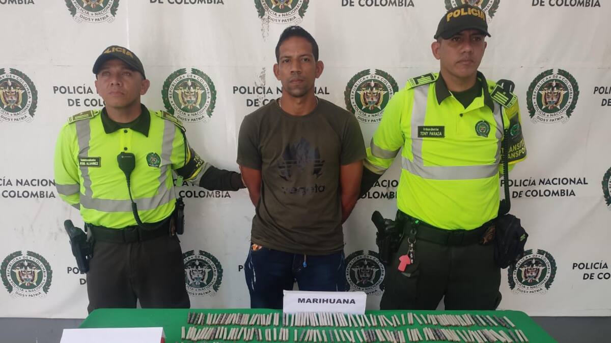 Uniformados de la Policía Metropolitana de Barranquilla lograron la captura de un hombre que transportaba en un bus de servicio público más de 384 dosis de marihuana.