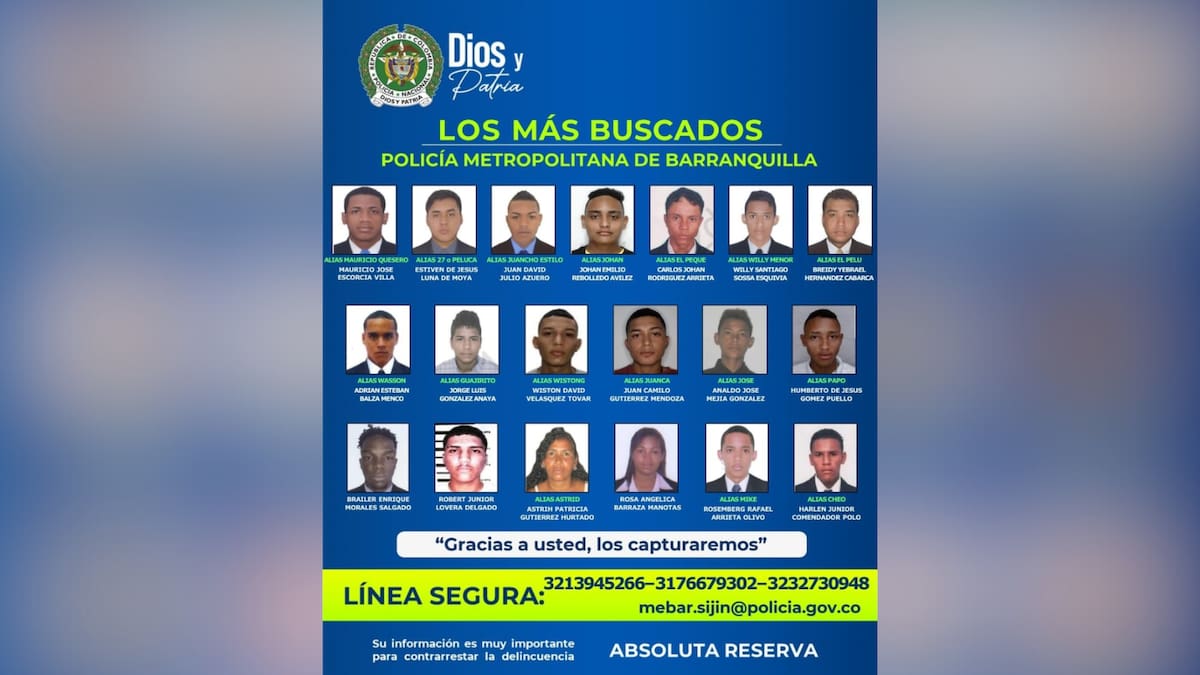 La Policía Metropolitana de Barranquilla divulgó este jueves 14 de marzo el cartel de los Más Buscados por el delito de homicidio.