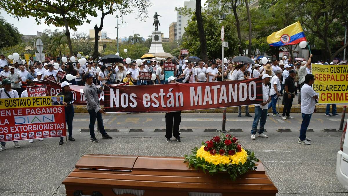 Esta fue la reacción de un colectivo de gremios por el reciente asesinato de Marco Aurelio Díaz, un reconocido comerciante del barrio Santa Inés, en el municipio de Soledad, que fue baleado por hombres armados este fin de semana, junto a su sobrino, aparentemente, por no hacer efectivo un pago extorsivo.