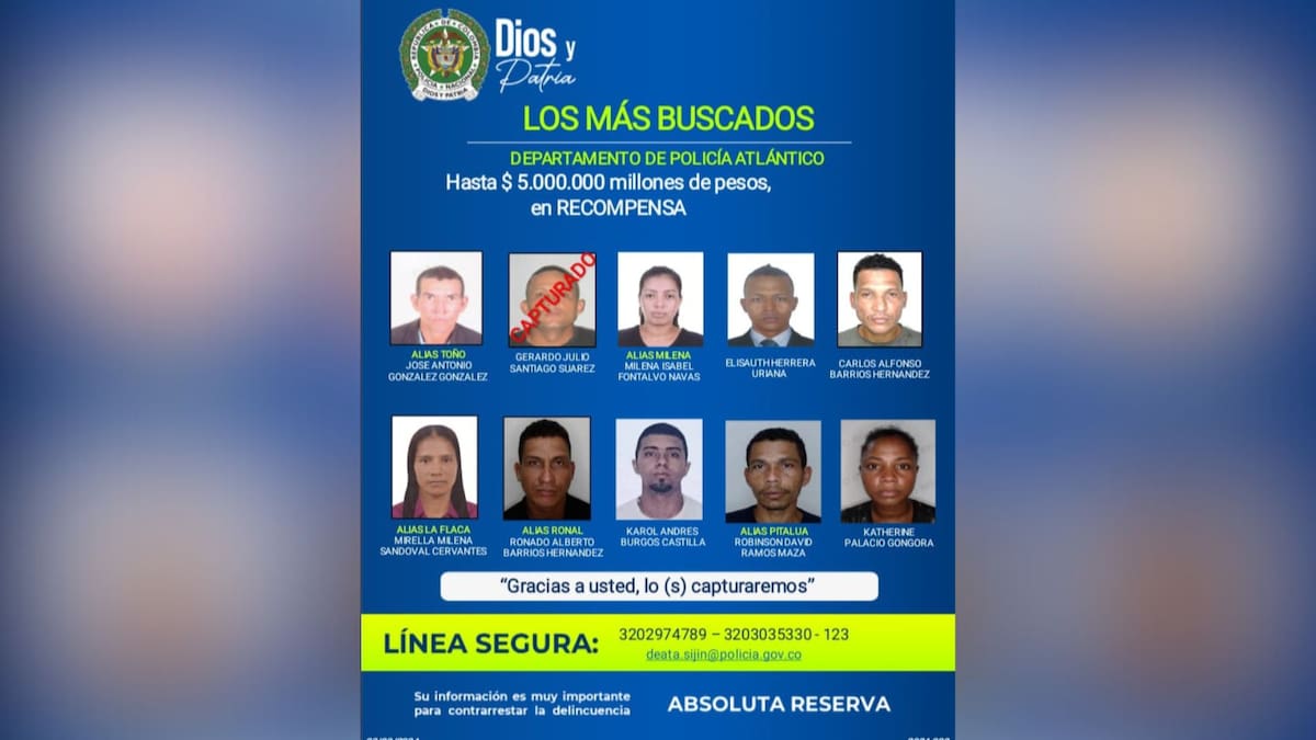 La Policía del Atlántico publicó este lunes 18 de marzo el cartel de los más buscados por diferentes delitos en el departamento.