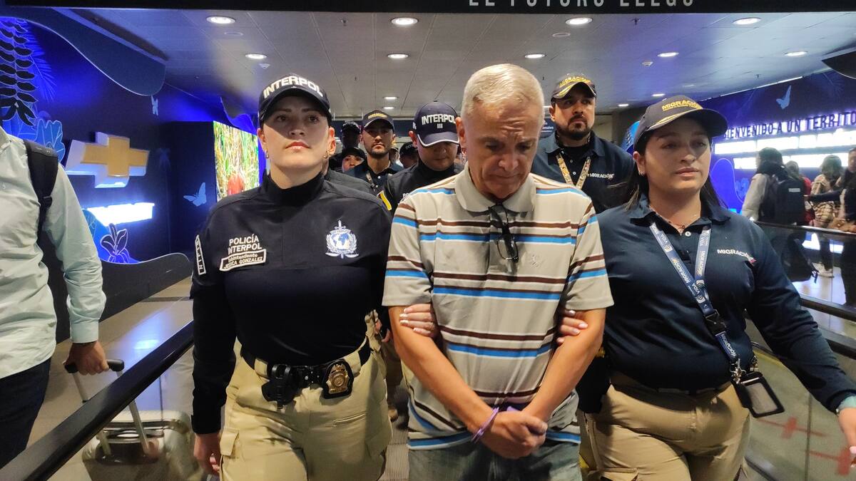 Toda vez que le reseñan cuál es el protocolo a seguir, una uniformada de la Interpol procede a cambiarle las esposas a unas de color púrpura, lo cual se realiza cuando son capturas por delitos contra las mujeres, tal y como ocurrió cuando el feminicida de Valentina Trespalacios, John Poulos, llegó de Estados Unidos a Colombia.