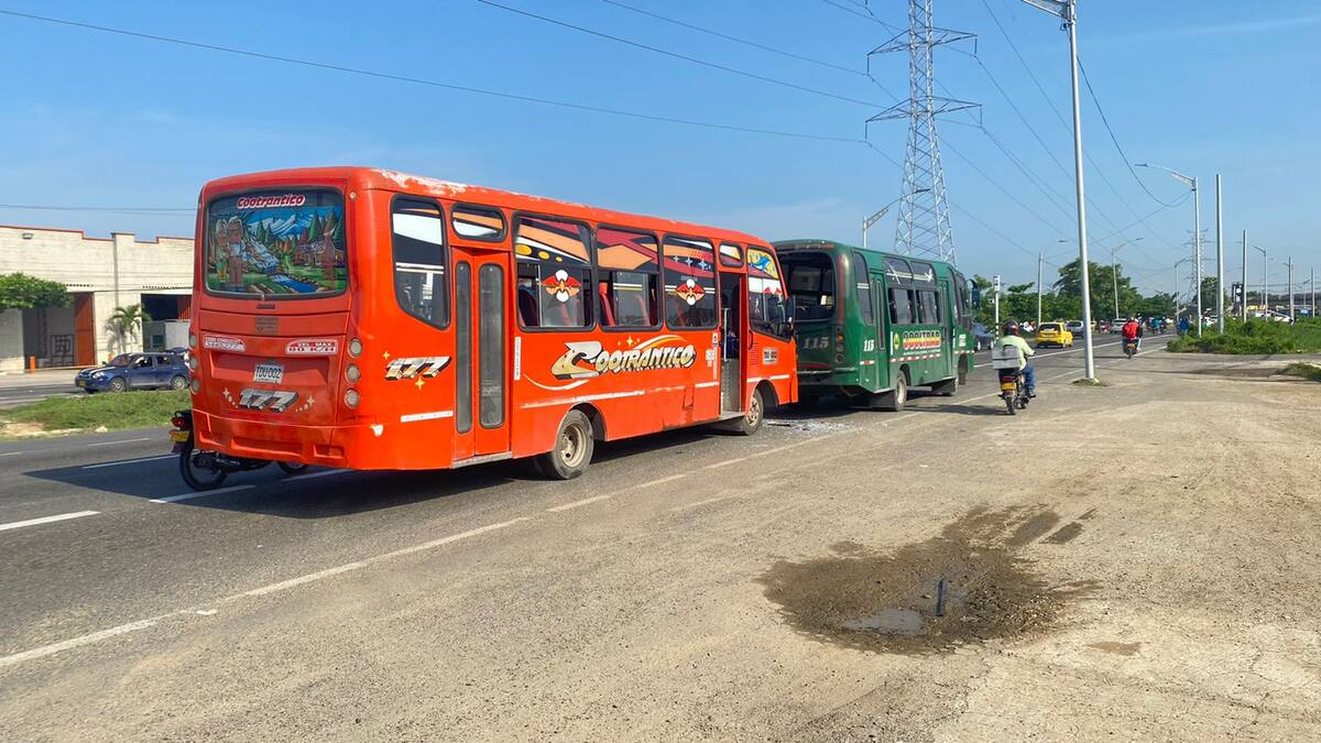 El fuerte choque entre dos buses de servicio público, en la mañana de este martes 20 de agosto, a la altura del sector de Caribe Verde, en la localidad Suroccidente de Barranquilla, dejó como rastro a cuatro personas heridas, entre las que se encuentra un joven de 20 años.