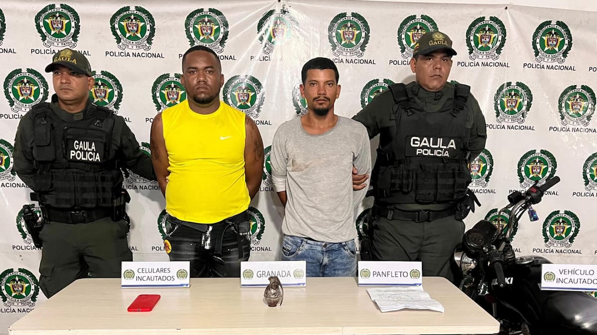 Durante el operativo también se incautaron una granada de fragmentación, cuatro panfletos extorsivos al parecer relacionados con el grupo armado Clan del Golfo y una motocicleta.
