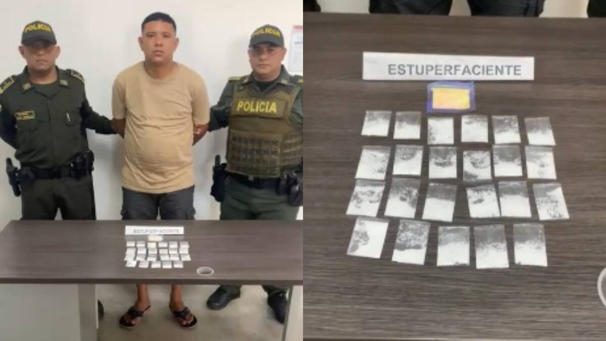 En la calle 15A con carrera 52, miembros de la Policía detuvieron a un hombre para adelantar un proceso de registro, en el cual le fue encontrado una bolsa de color blanco que contenía una sustancia rocosa blanca y 20 papeletas con una sustancia polvorienta de color blanco, con características similares a la base de coca.