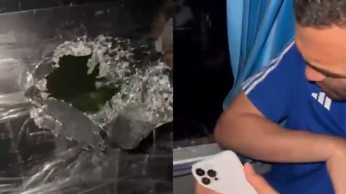 Durante el desplazamiento del equipo Millonarios, una persona malintencionada que, al parecer, no hacía parte de algún grupo de hinchas, sino que se encontraba sola, lanzó un objeto contundente contra el vehículo del equipo capitalino.