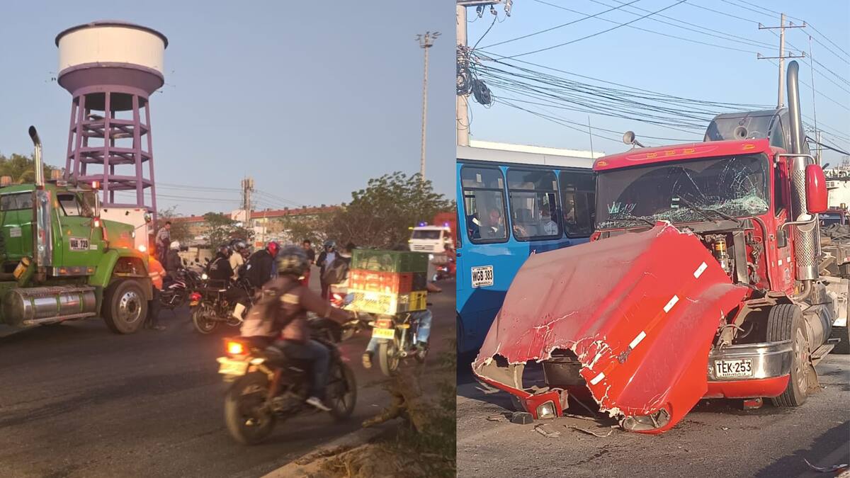 El primer hecho se reportó desde la altura del puente del barrio Hipódromo, donde un adulto mayor, identificado como Oreste José Torregroza Hernández, de 72 años, fue embestido por una tractomula, placas VHA-739, y terminó muerto de manera instantánea.