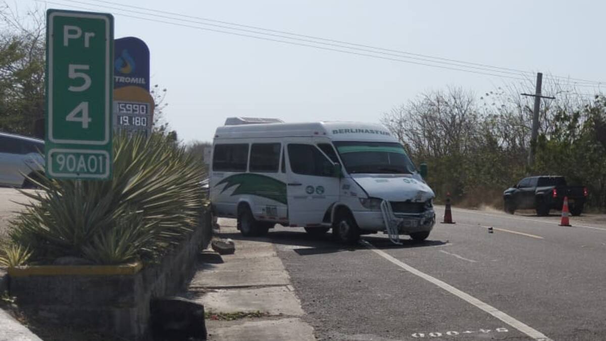 Los vehículos involucrados en el siniestro son: un microbús de la empresa Berlinas, línea Sprinter 413, de color blanco verde, y placa SOR- 177; y una motocicleta de color azul, placa AZH-29.