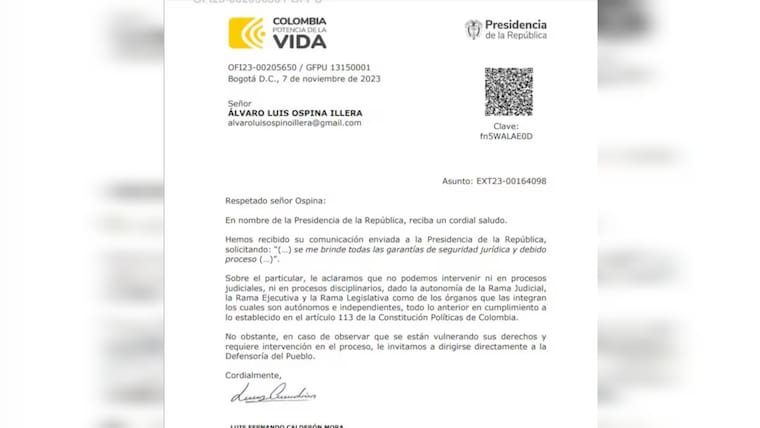 Además le solicitó a la Fiscalía General, a la Procuraduría y a la Presidencia de la República que certificaran que él no estaba detrás de los asesinatos del ‘Clan Vega Daza’, basado en una petición que ya había realizado en octubre de 2023 a la Fiscalía Seccional Atlántico y a los otros órganos en mención.