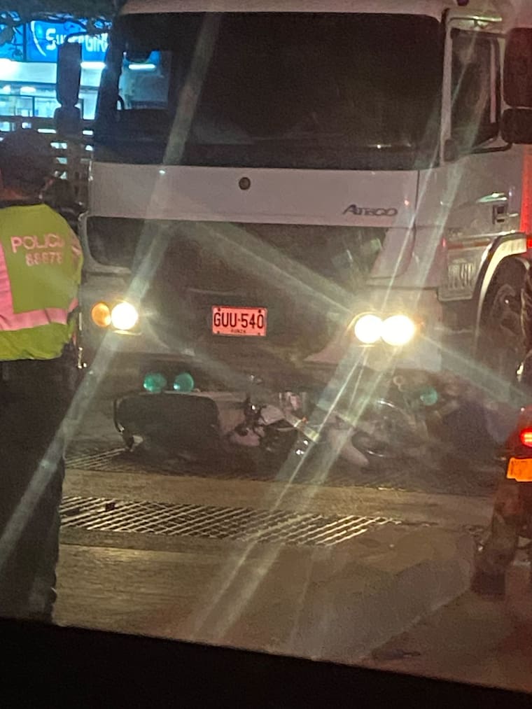 Testigos manifestaron que hacia las 7:10 de la noche un motorizado, que iba en un vehículo Suzuki AX4, de placa CFY 08H, fue arrollado por un camión transportador de alimentos, de placas GUU-540.