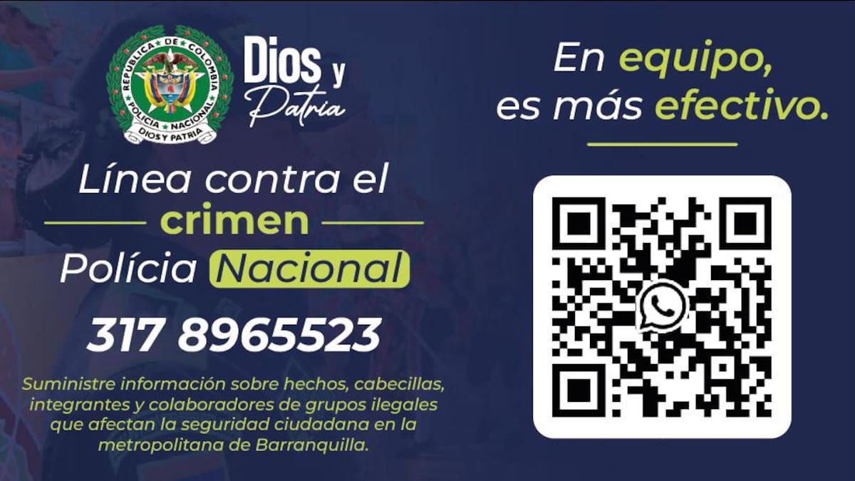 En el marco de la lucha frontal contra la inseguridad y la delincuencia, la Policía Metropolitana de Barranquilla ha puesto a disposición de la ciudadanía la Línea Contra el Crimen 3178965523.