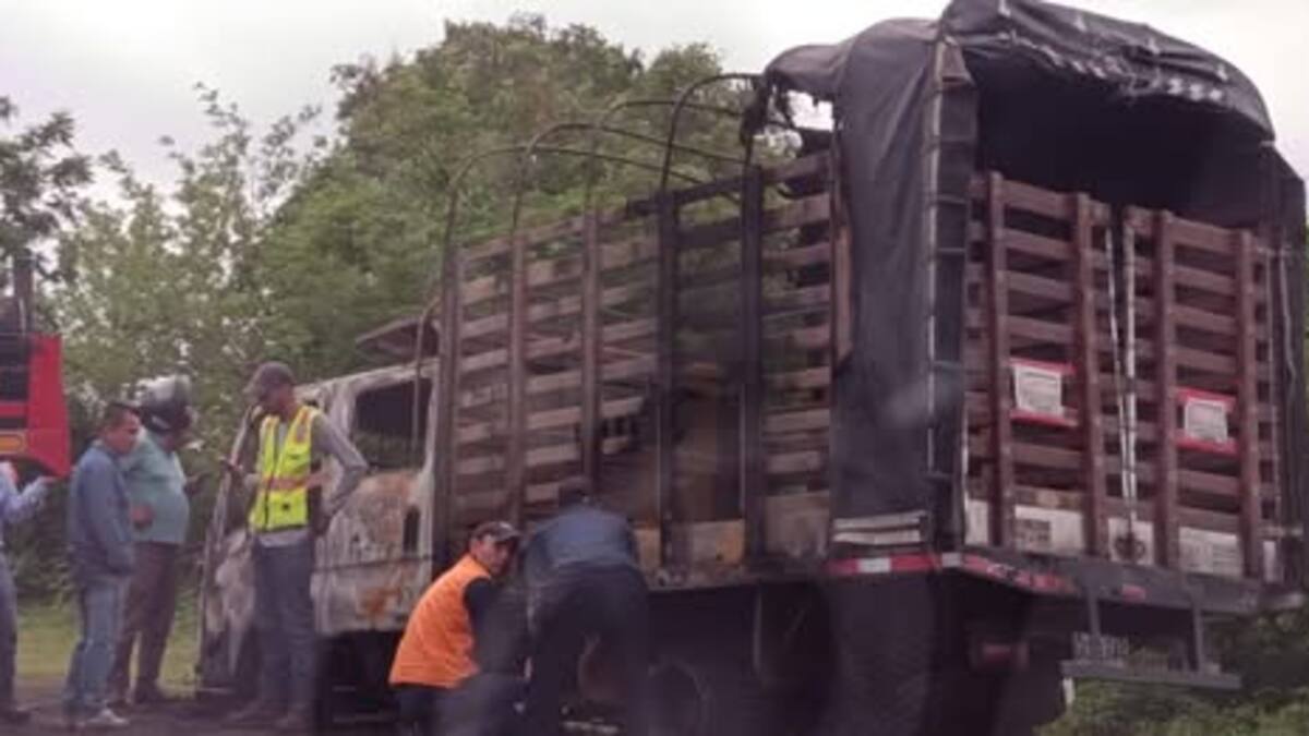 Seguidamente los criminales encañonaron al hombre y le robaron sus pertenencias, posteriormente incendiaron el camión. Tras perpetrar el robo, los sujetos escaparon en la motocicleta hacia un rumbo desconocido.