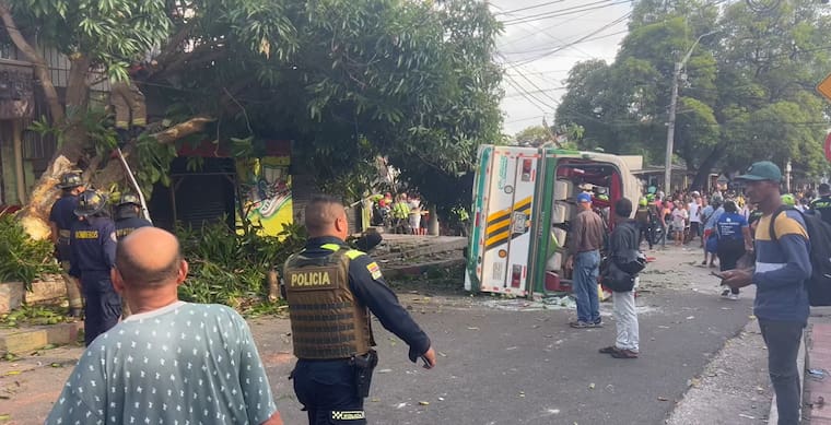 El testigo narró además que el conductor intentó descender en forma de zigzag con el propósito de rozar las llantas contra los andenes para disminuir la velocidad poco a poco, pero aquello fue en vano, ya que el vehículo terminó embistiendo a varios ciudadanos para terminar colisionando contra un árbol hasta volcarse.