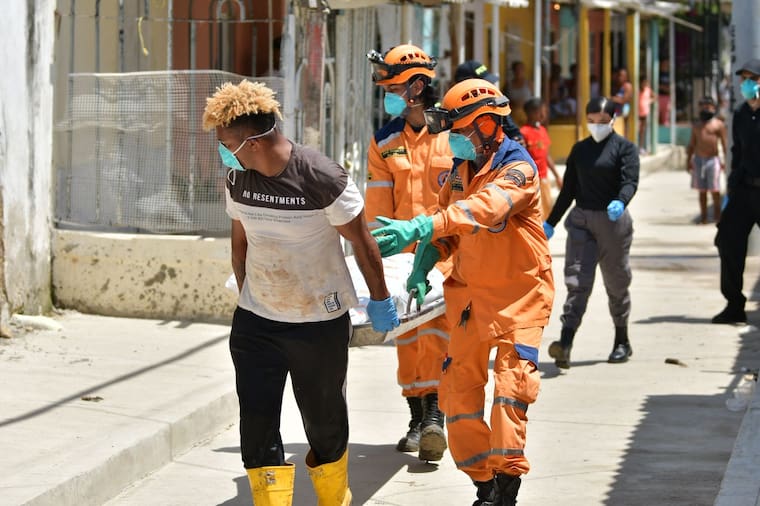 Jeisson GutierrezMomentos en que el cuerpo del joven de 15 años es trasladado por miembros de la Defensa Civil hasta el camión del CTI.