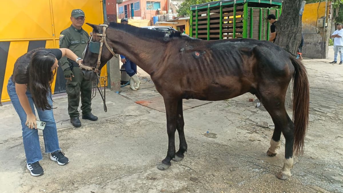 Policía Metropolitana de BarranquillaEl equino presentaba varias laceraciones y se encontraba en un evidente estado de desnutrición.