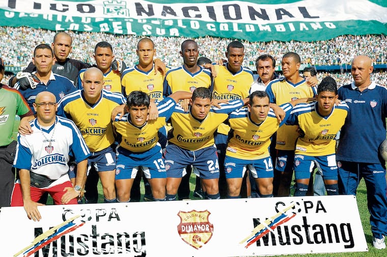 Junior campeón de 2004 (II). Arriba, de izquierda a derecha: Léider Frías (utilero), Luis Fernández, Francisco Alvear, Roberto Peñaloza, Éver Salas, Cristian Racero, Mondragón (un tolimense que es hincha fiel del club) y Leonardo Rojano. Abajo: ‘el Mello’ Aguilera (utilero), Omar Pérez, José Amaya, Martín Arzuaga, Hayder Palacio y Daniel Machacón.