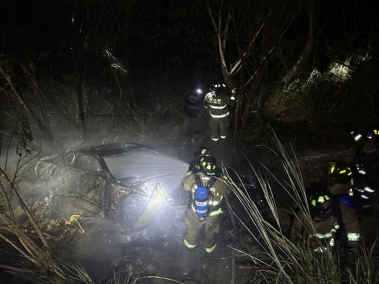 Entretanto, el carro Camaro se salió de la carretera y terminó incinerado por completo.