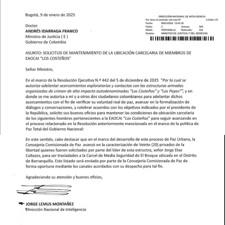 Dicho documento, se apoya en la Resolución Ejecutiva N.º 442 del 5 de diciembre de 2025 “Por la cual se autoriza adelantar acercamientos exploratorios y contactos con las estructuras armadas organizadas de crimen de alto impacto autodenominadas ‘Los Costeños’ y ‘Los Pepes’”.