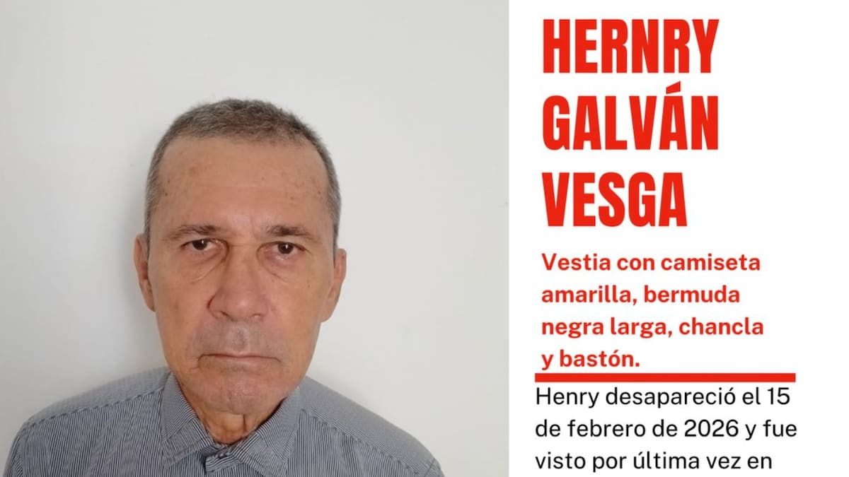 Los familiares del hombre, de 71 años de edad, manifestaron que este salió de una vivienda donde pasa días de descanso y no regresó. En ese momento vestía camiseta amarilla, bermuda y sandalias.