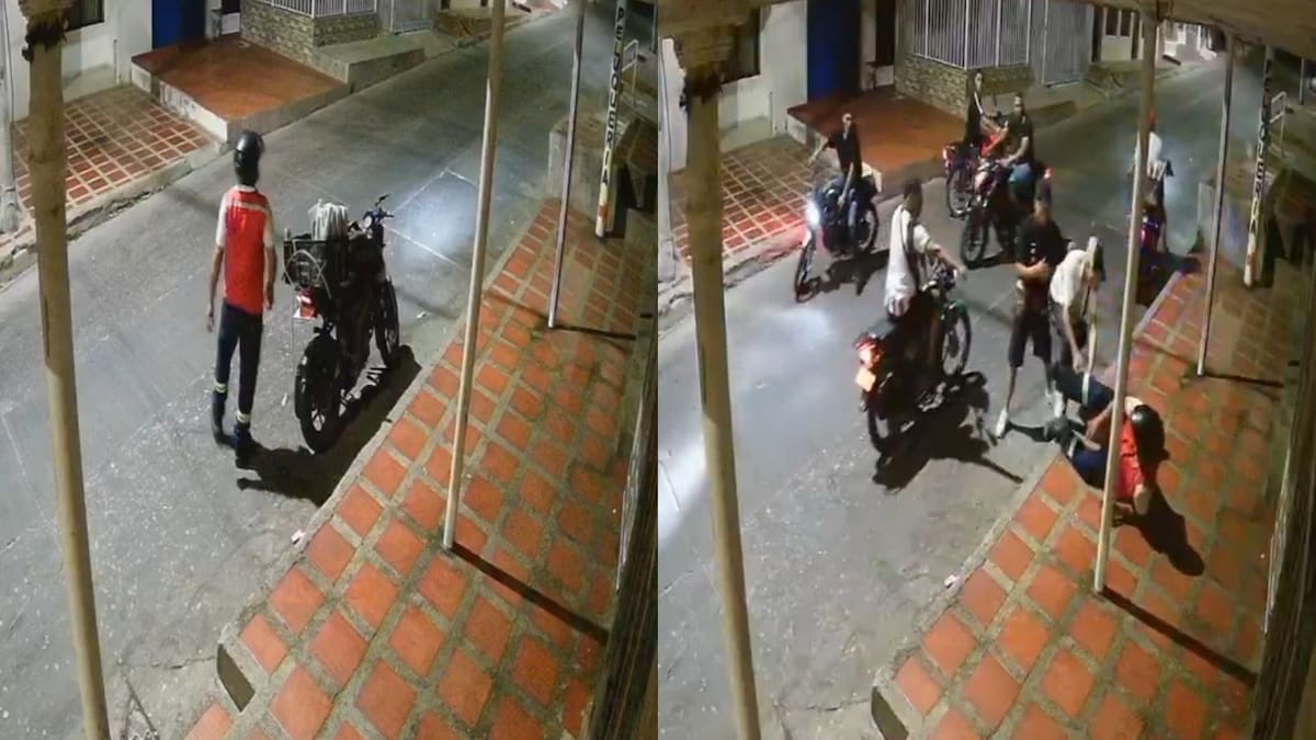 En un video que hoy hace parte del material probatorio de las autoridades, se aprecia el momento en que la víctima, luego de dejar el producto, es abordada por al menos siete individuos en cuatro motocicletas.