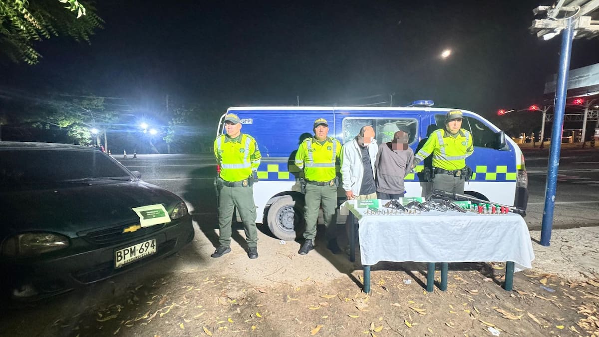 A partir de estos hallazgos, las autoridades procedieron a la captura en flagrancia de los dos ocupantes del vehículo, quienes no lograron justificar la procedencia ni el porte del arsenal.