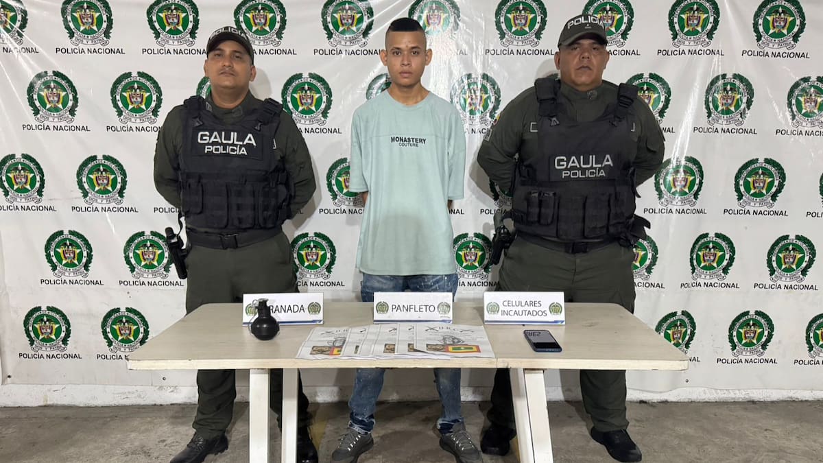 El procedimiento se desarrolló durante labores de control y seguimiento, cuando las autoridades sorprendieron al individuo en posesión de panfletos extorsivos y una granada, elemento de uso privativo de las Fuerzas Armadas. Por estos hechos, fue capturado y deberá responder por el delito de fabricación, tráfico, porte o tenencia de armas, municiones o explosivos de uso restringido.