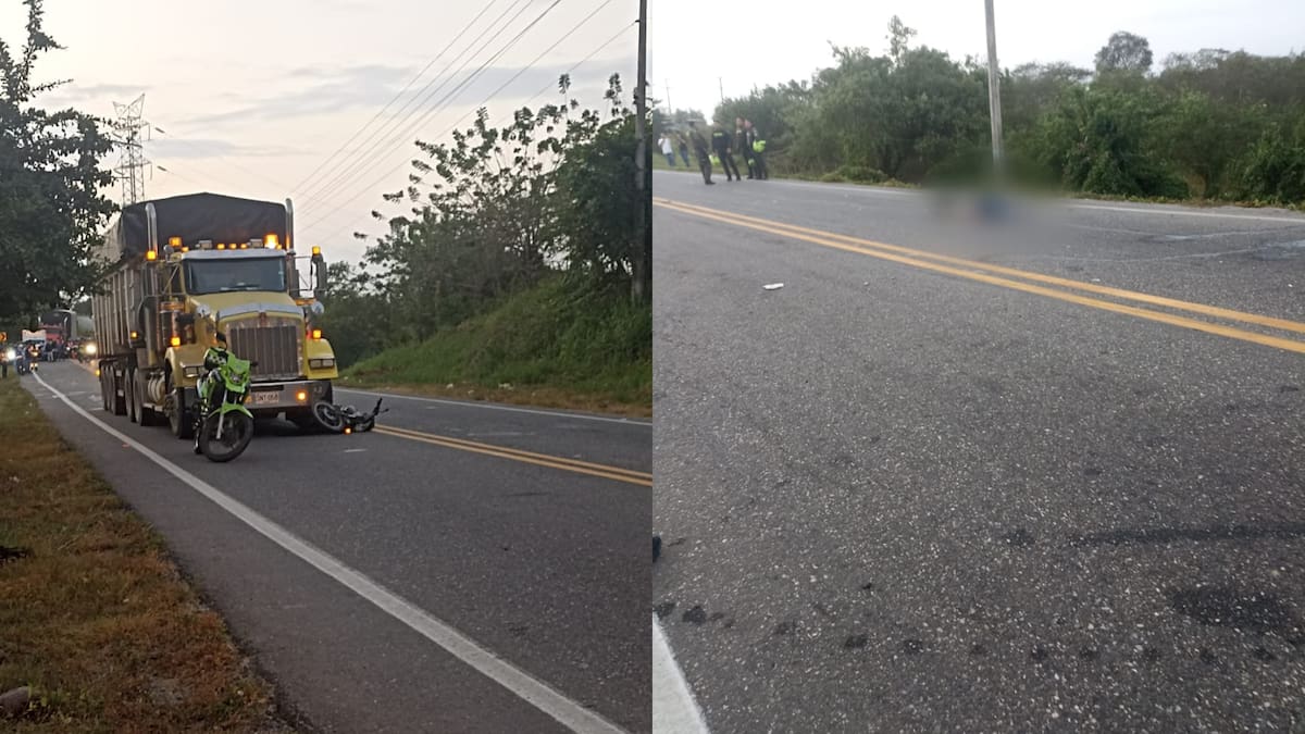 El accidente, cuyas causas aún están bajo investigación por las autoridades competentes, ocurrió en el carril que comunica a ambas ciudades costeras entre una motocicleta negra marca Bajaj de placa ANB 80D, una bicicleta y un tractocamión amarillo de placas SNT 058.
