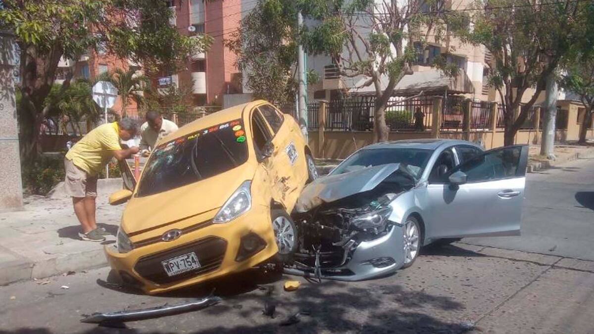 Un accidente de tránsito entre un taxi tipo ‘zapatico’ y un vehículo particular, ocurrido este lunes en el norte de Barranquilla, dejó dos lesionados. A través de la línea Wasapea a EL HERALDO usuarios reportaron el hecho que se dio exactamente en la carrera 64b #96 - esquina. Ambos conductores de los automóviles fueron llevados a la clínica.