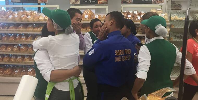 Una persona que se encontraba en el lugar realizó el reporte vía Wasapea A El Heraldo y envió la siguiente fotografía en la que se ve a los empleados del supermercado momentos después del incidente.