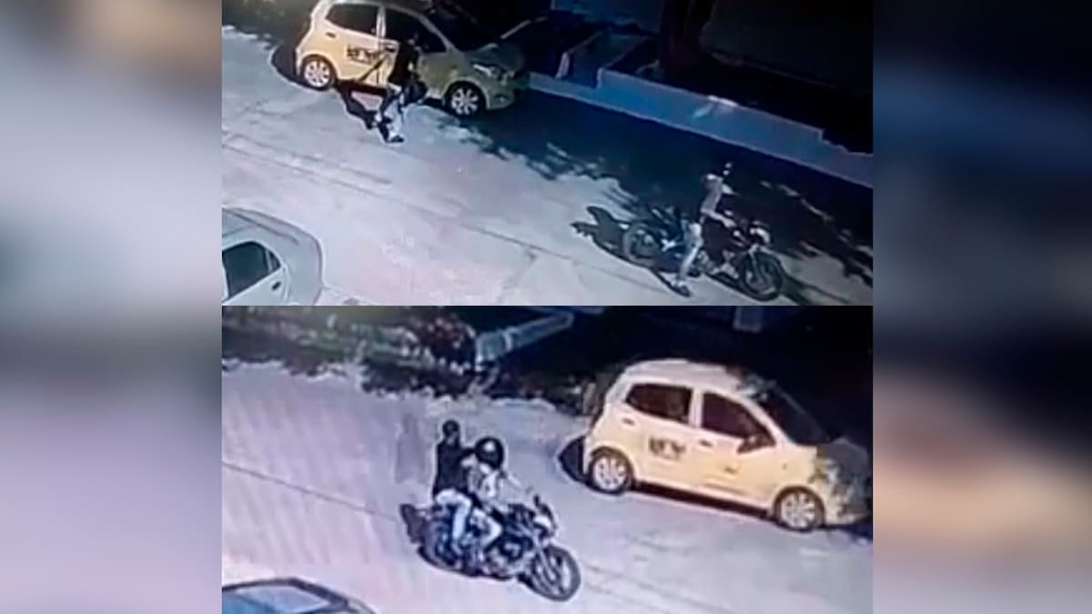 En un video de una cámara de seguridad quedó registrado el momento exacto en el que dos sicarios atacaron a disparos a dos hombres que se movilizaban a bordo de un vehículo tipo taxi de placa SDV 797.
