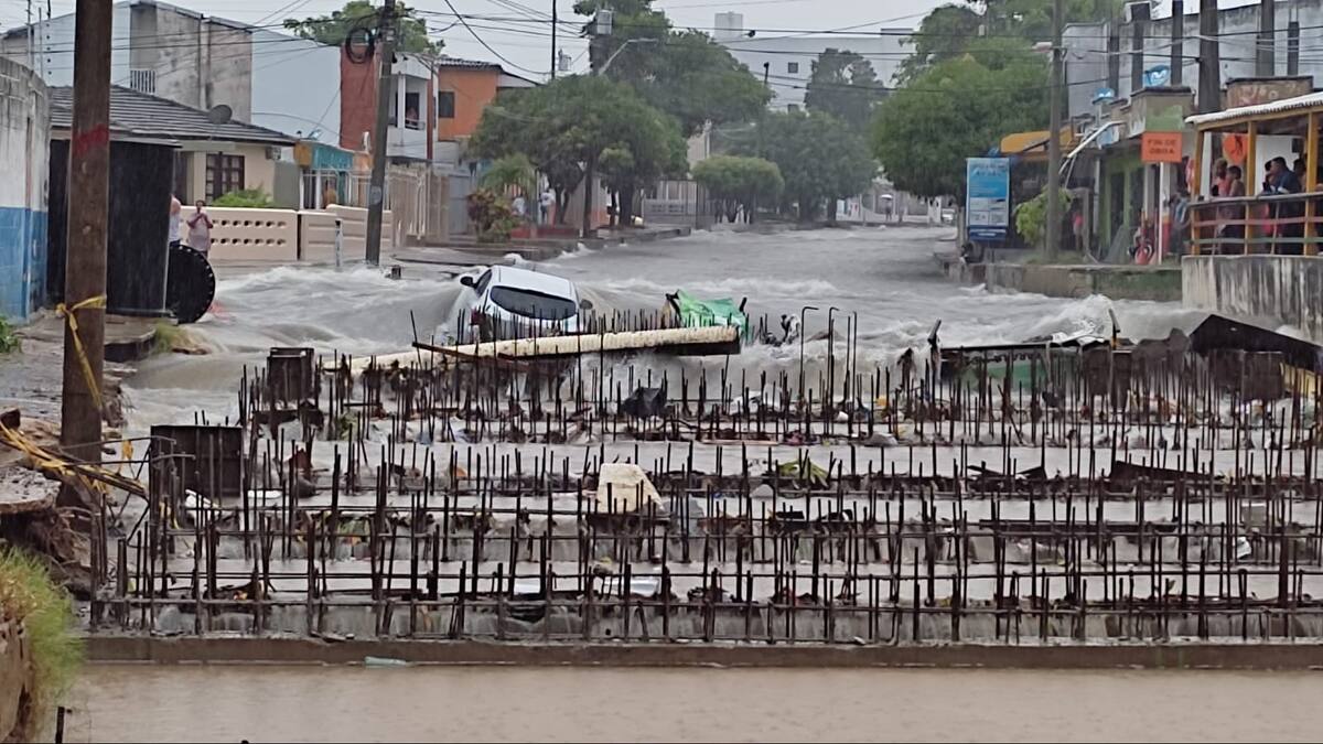 De igual forma, en la calle 57 con carrera 27 un vehículo que se encontraba estacionado en esa zona del barrio Los Pinos fue arrastrado por un arroyo. La fuerte corriente llevó el vehículo hasta los sumideros de captación de la canalización del arroyo Felicidad.