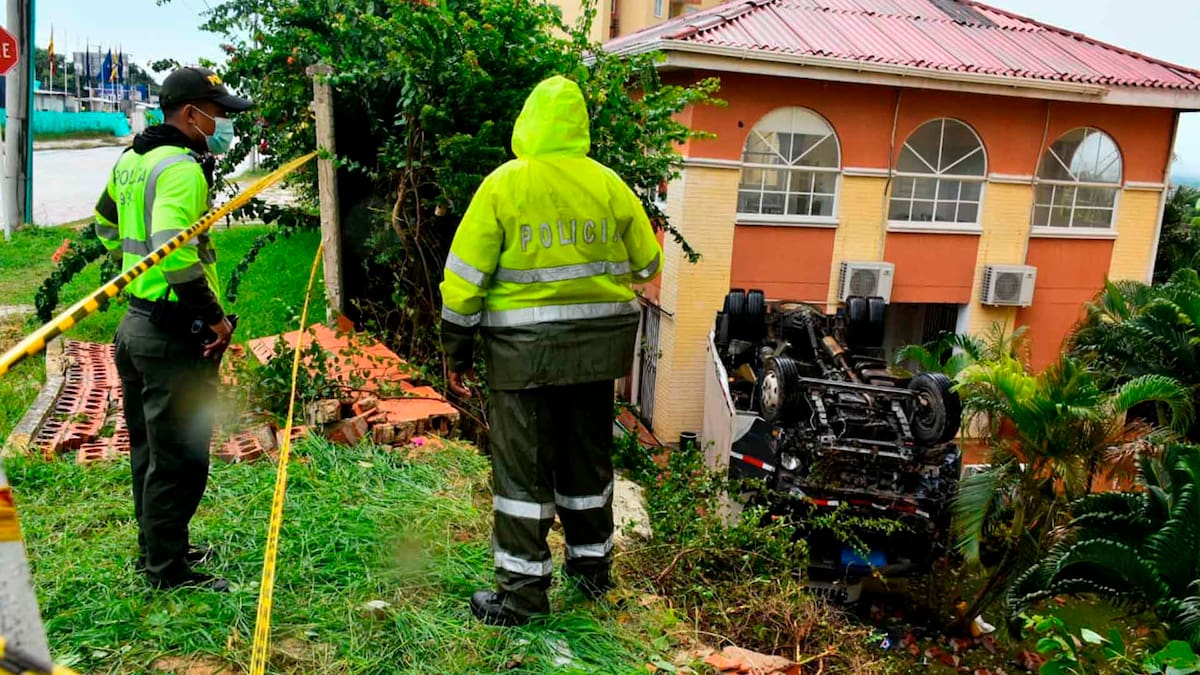 El impacto del vehículo fue tan fuerte que la pared quedó totalmente destruida, permitiendo que el camión siguiera su curso hasta chocar contra una de las viviendas del conjunto. En el camino, el camión se volcó 180 grados, tal y como quedó registrado en videos de cámaras de seguridad y de ciudadanos que vieron el accidente.