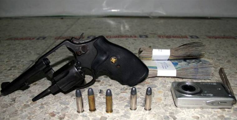 Una patrulla de la policía interceptó a los sujetos en la carrera 43 con calle 42, logrando la captura de uno de ellos, quien portaba un revólver calibre 38 y 4 millones de pesos. El otro delincuente logró huir en la motocicleta.