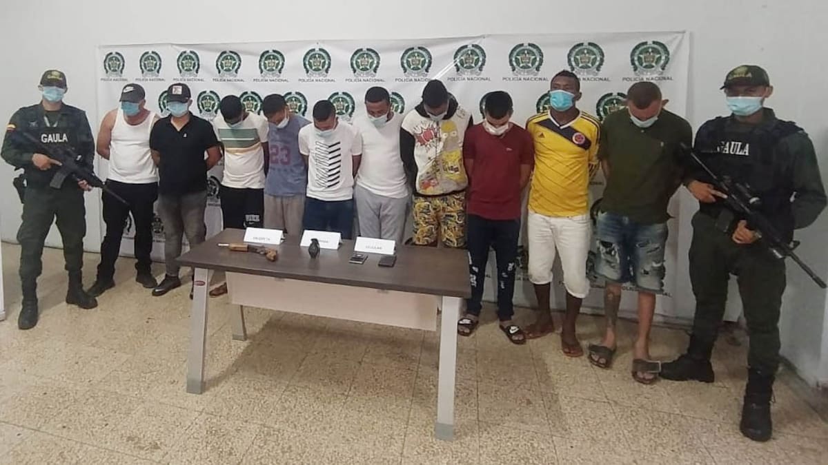 Los detenidos fueron identificados como Camilo Vizcaíno Lejarde, señalado cabecilla del grupo delincuencial, quien registra anotaciones judiciales por fabricación, tráfico y porte de armas de fuego o municiones; Cristian Gómez Beleño, alias Pipo, segundo al mando. Presenta anotaciones por fabricación, tráfico o porte de estupefacientes. Elkin Quezada Puello, alias Orejón, quien fungía como financiero. Registra una anotación por hurto.