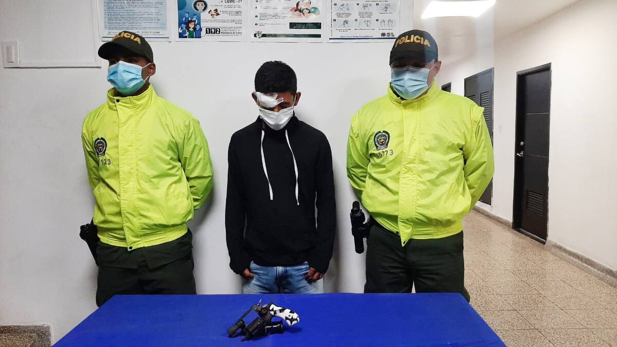 Sin embargo, un residente del sector llamó al Comando de Policía para informar que uno de los sospechosos se marchó del lugar con una de las armas de fuego con las que pretendían realizar el hurto y que este se encontraba en la carrera 6B con calle 24, barrio Simón Bolívar.
